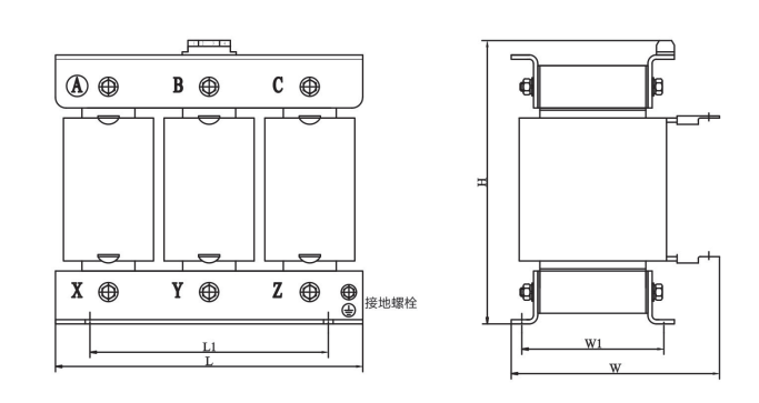 結構簡單;結構設計合理,電抗器體積小,獨特的散熱通道設計,底腳安裝孔通用性強,可兩側出線,可單側出線,便于柜內安裝。